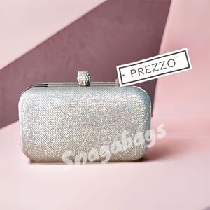 PREZZO NWT SILVER CLUTCH CROSSBODY BAG BLING SHINY RHINESTONE SPECIAL EVENT
