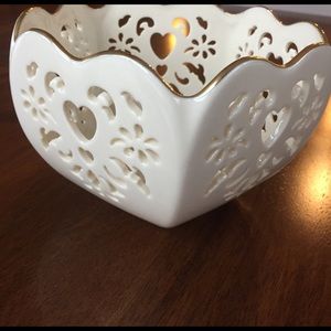 ❗️PRICE CUT❗️Beautiful LENOX cream bowl with gold trim. Carved out intricate designs on each side. 5 sides of gorgeous! Between 3.5-4" tall. About 6" across at any angle. Stunning piece of Lenox!