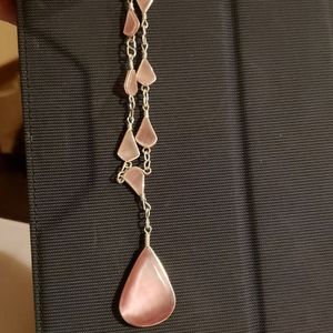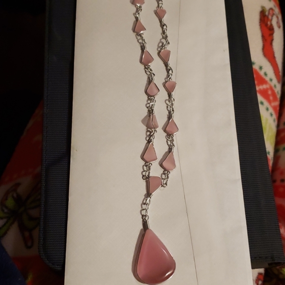 Pink Stones w/white wrapped & chain.Necklace with Pink from Dominican Republic.