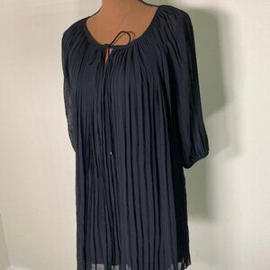Diane von Furstenberg Black Dress Pleated V-Neck 3/4 Sleeve 0