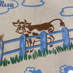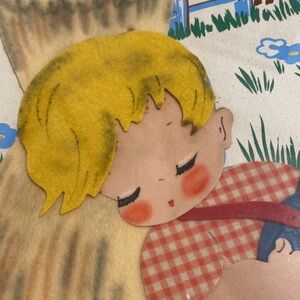Perfect addition to a baby boy’s nursery! Art is a combination of felt and painting. White wood frame and ready to hang. Frame has an expected amount of vintage wear. Measures 9.5 X 12. Part of “Young Ideas”.