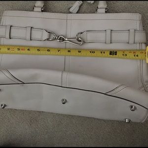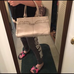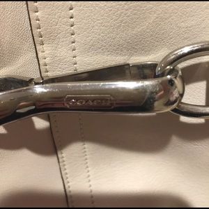 Authentic cream Coach purse. With tassel and strap Super cute. In perfect condition. Needs to be wiped down but no stains or rips or marks. Make an offer!!