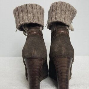 Great pre-loved condition. Minor streetwear on the bottom soles (basically dirt stain). Just had the heel taps replace by a Cobbler. Lovely Wedge boots