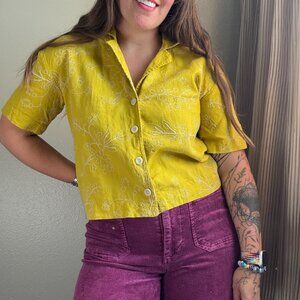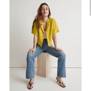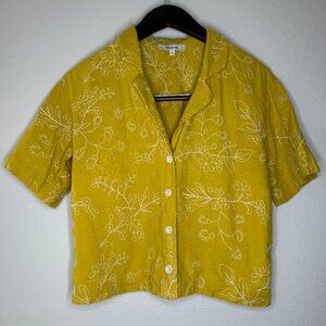PRICE FIRM Madewell Yellow Embroidered Linen Boxy Button Down Shirt | Size XS/S