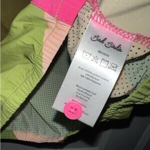 Bad Birdie Range Short Sleeve Crop Polo, new with tags still attached, cotton candy skies design similar to photos, button down, clinched waist, partial mesh back, lightweight material made of recycled polyester and elastane, size large