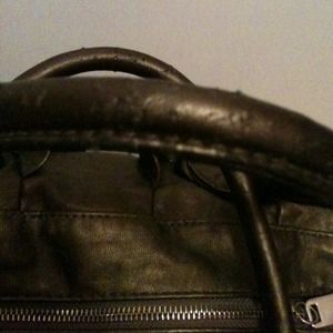 Grey Steve Madden purse with ruffles. On the ruffles are small silver studs. Handle on purse is slightly worn as seen in picture.