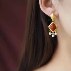 💎PRICE🔻 S925 Post Gold Plated Agate Pearl Earrings high quality real stone