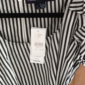 Adorable black and white dress with ruffle sleeves and contrasting belt and hem. Belt can be worn in front or back. Dress is lined and house is smoke free. New with tags.