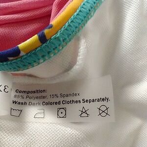 ROSEGAL SIZE 3X Bust: 44" & Length: 34.5". But it also says US 20. This doesn't fit a true 3X. It would fit more like a 2X 18-20. All measurements are approximate. The colors of the suit are Mauve,Pink,Teal,White,& Yellow.