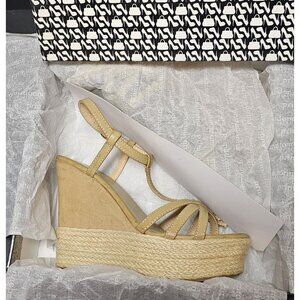 The wedge heel style and high heel height of 5 inches add a touch of sophistication to your wardrobe. The heel and shoe box are lined with twine for a summery look.