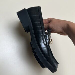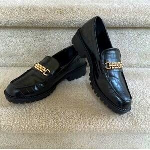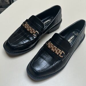 💜🤑 PRIMARK Black Leather Loafers with Gold Detail SIZE 7