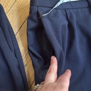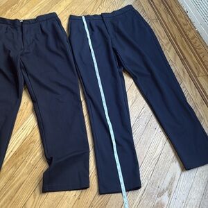 Primark men’s navy blue pants bundle, includes 2 pairs, both size W34 L32, classic straight-leg style with zip fly, button closure, and hidden drawstring, one pair has an elastic waistband for extra comfort, versatile everyday essentials great for workwear or casual outfits, lightweight fabric with some stretch, one pair shows minor pilling as pictured, sold as a set of two, wardrobe basics at a great value, minimalist core, casual core, streetwear core.