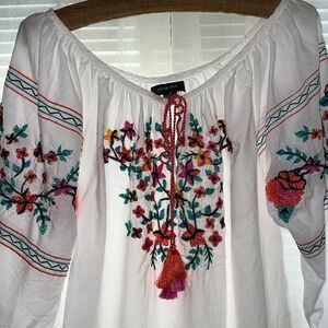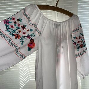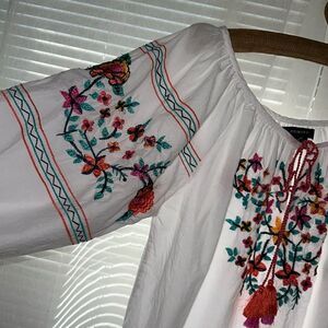 PRIMARK M White Embroidered Floral Beach Cover Up Quarter Sleeve Cotton Tunic