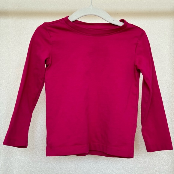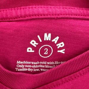 PRIMARY | Raspberry Long Sleeve Classic Tee. Size 2. 100% cotton jersey. Pre-washed to minimize shrinkage.Incredibly soft and breathable. Looser, more traditional fit than the Long Sleeve Slim Tee. A classic, everyday tee for your little one. Very good condition . #primary #raspberry #pink #everyday #fall #firstdayoutfit #schoolday #schooliscool #preschool #daycare