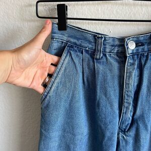 PRIME TIME JEANS Vintage 90s High Rise Mom Denim Jeans, pleated a bit at the top, side pockets and zipper closure. Relaxed fit and a straight leg.