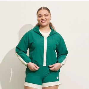 PRINCE. Women’s Jacket windbreaker Zip Hooded Cropped Logo size L. Green