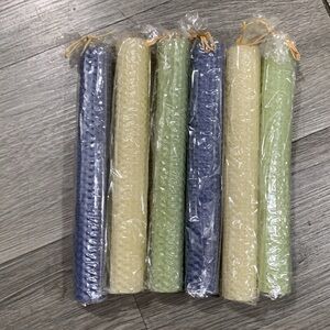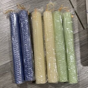 PRINCESS HOUSE 3 color (blue,green,Cream) 8" BEESWAX Tapers CANDLES #1226 - NIB