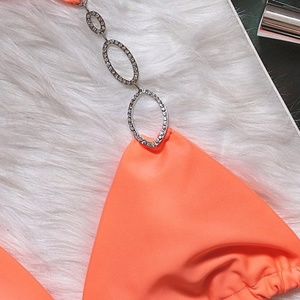 NEW PRINCESS PEACH Rhinestone Crystal Brazilian Bikini Swimsuit Jeweled Rhinestone Swimsuit