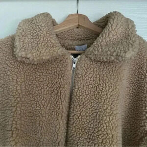 Princess Polly Teddy Coat. Oversized faux fur coat. This product is PETA-Approved Vegan. Collared neckline. Front zip fastening. Twin front pockets. Elasticated cuffs and band. Fully Lined. 100% polyester. Size small/medium. Good preloved condition