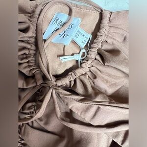 PRINCESS POLLY Brown strapless ruched cutout top and maxi skirt size 6.