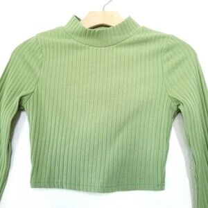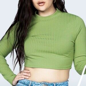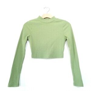 PRINCESS POLLY Cora 90s Ribbed Long Sleeve Crop Top Lime Green Clean Girl 2 y2k