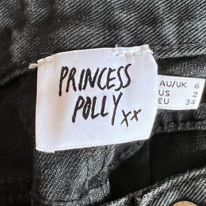 High rise black vintage wash denim. Wide leg, ankle crop. Size US 2