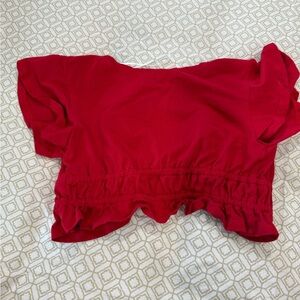 This chic red top features a flattering deep V-neck and stylish ruffle details. Perfect for any occasion, it adds a pop of color to your wardrobe.
