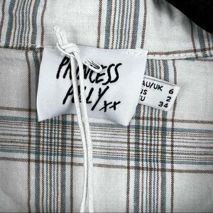 PRINCESS POLLY Leigh Lightweight Plaid Shirt in White, Size 2, Oversized Fit NWT
