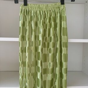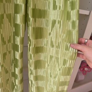 Relaxed fit. 95% polyester 5% elastane. Silky material. Pleated design. High waisted pants. Elasticated waistband. Good stretch. Unlined. Size 0. Great preloved condition