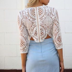 PRINCESS POLLY Lioness Sheer White Lace Crop Top