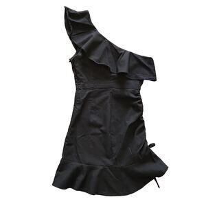 PRINCESS POLLY Off Shoulder Black Ruffled Mini Dress Size 6