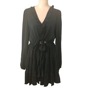 NWT PRINCESS POLLY Randi Dress Women's Size US10 Teal Mini Ruffles Long Sleeves