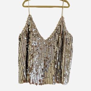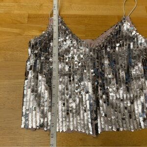 Sparkly Princess Polly silver sequined cami. Has been shortened from original top making it shorter in the back. . See photos 5-6.