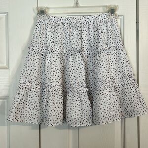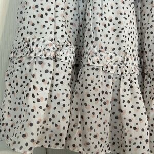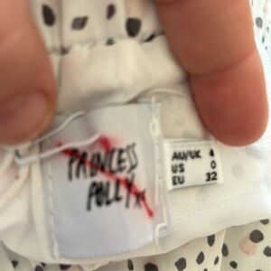 Size 0 Princess Polly Rasmus white, gray, peach mini skirt. Ruffled and tiered. Linen blend.