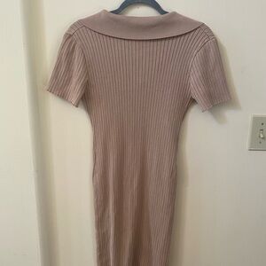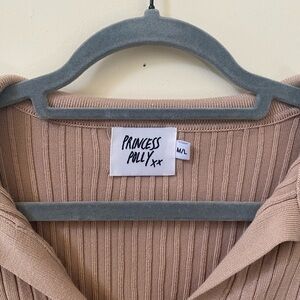 Size M/L. Princess Polly ribbed tan collared jersey mini dress. Elevate your style with this chic tan ribbed dress. Perfect for any occasion, this dress offers a flattering fit and timeless elegance. Excellent used condition. Reasonable offers welcome!