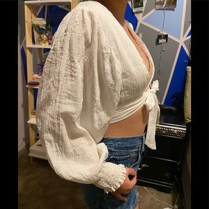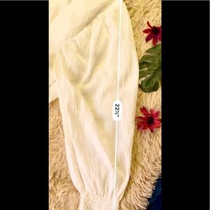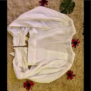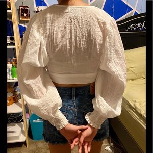 THE BLOUSE GOES PERFECTLY WELL WITH A BIKINI TOP. THE FABRIC IS 100% COTTON, VERY FRESH.