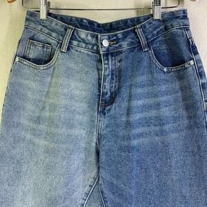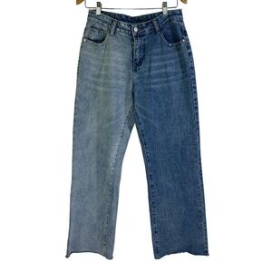 PRINCESS POLLY Trader Two Tone Wide Leg High Rise Frayed Denim Jeans NWT