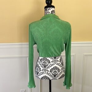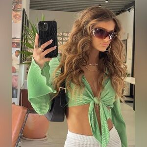 Princess Polly Ribbed halter top in gorgeous jewel green! Ties in front, wide bell sleeve, halter style, mid drift. Pair with your favorite jeans or white skirt ! Cute halter top!
