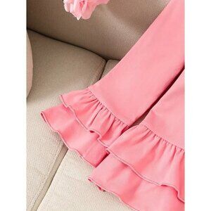 This adorable princess set features a floral pattern, perfect for spring and fall. Made with a slight stretch for comfort, it's ideal for a stylish look. Machine washable for easy care.