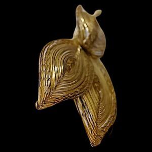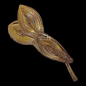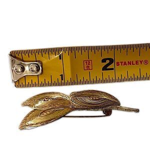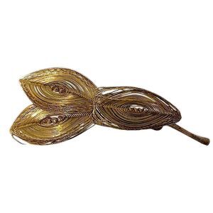 PRINCESS Wire Wrapped Brooch Pin Triple Leaf Gold Tone West Germany Modernist