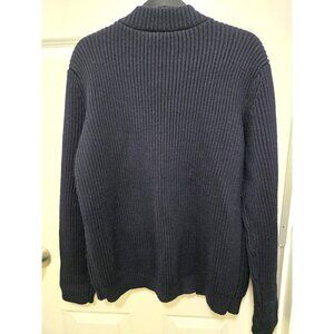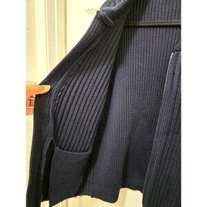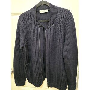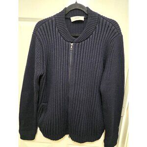 PRINGLE OF SCOTLAND 100% WOOL Navy Blue Ribbed Knit GRANPA CORE Full Zip Sweater