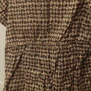 PRINTED BUTTON DOWN BLOUSE, SHEER, SIZE LARGE, COTTON