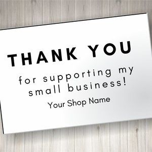 60- 4"x6" Thank you flat cards that are blank on the other side for you to write a message to your customer thanking them for supporting your small business.