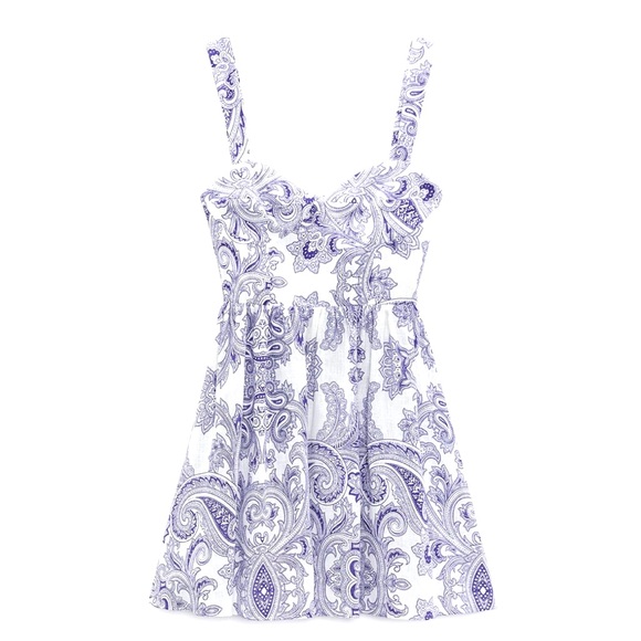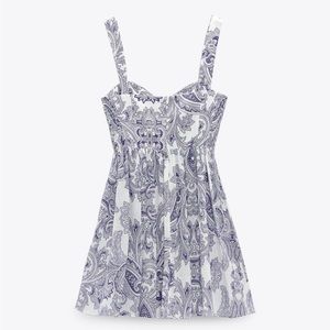 NWT. Never worn. Brand new condition. Short dress made of cotton and linen blend fabric. Sweetheart neckline and wide straps. Pleats at waist. Hidden in-seam zip closure. Please review pictures.