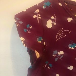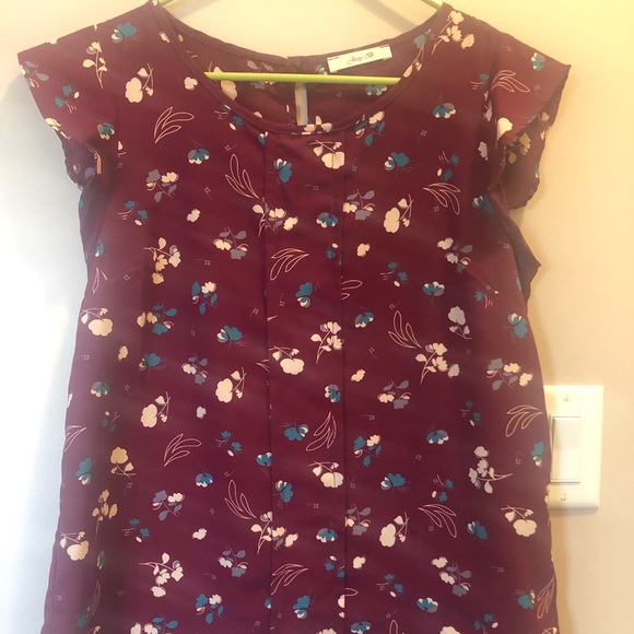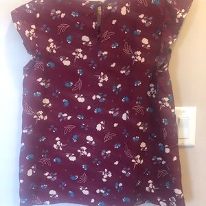 Floral top with flutter capped sleeves 24 inches long 17 inches armpit to armpit when lying flat