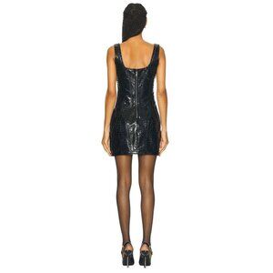 PRISCAVera Leather Corset Dress in Midnight Croc Small New Womens Mini
