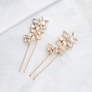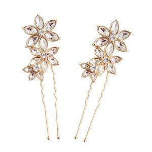 **PRISCILLA* 2-Pc Gold Rhinestone Flower Hair Clip