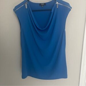 Beautiful, practical Light weight top with zipper decoration on the shoulders. Cowl neck. Some stretch to it.
