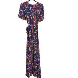 PRIVACY PLEASE Blue Floral Wrap Plaza Kimono Maxi Dress size Small