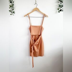 PRIVACY PLEASE Islander Tie Waist Cutout Mini Dress in Sand Size Small